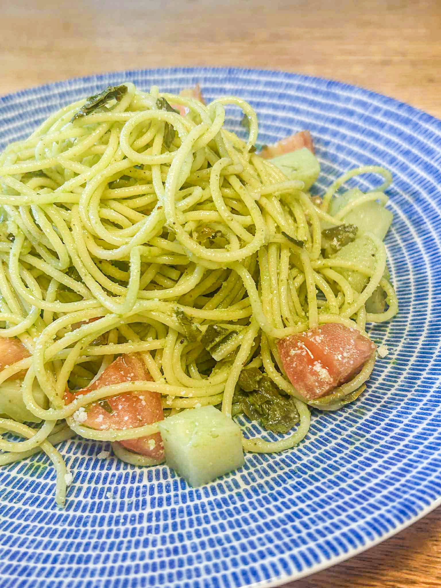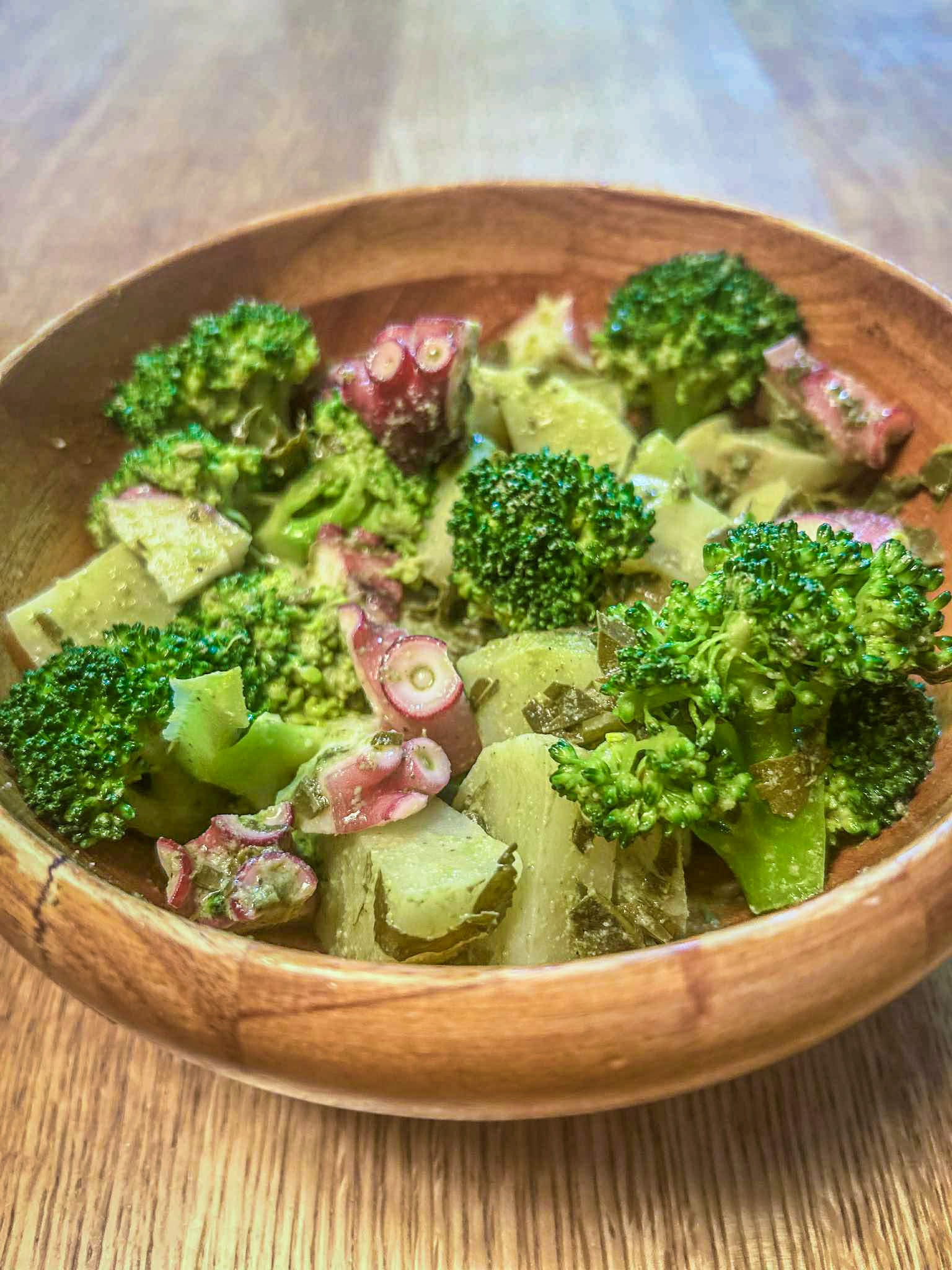 「近江茶ジェノベーゼ」を使った二皿!「ジェノベーゼパスタ」と「近江茶香る!タコとブロッコリーのジェノベーゼサラダ」の作り方(合同会社ふくろう ビストロ向日葵)
