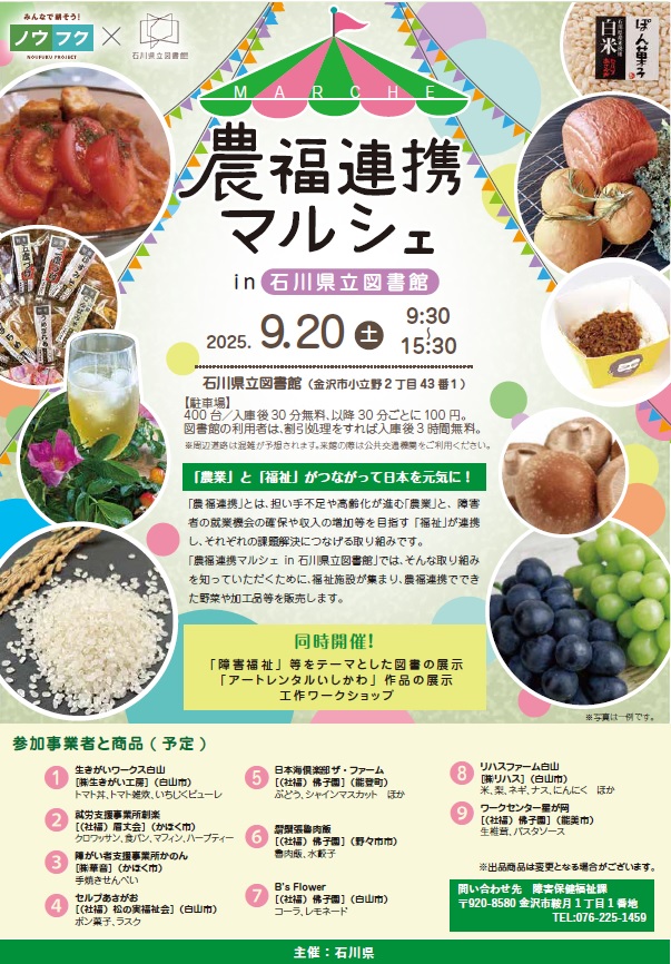 石川県金沢市で「農福連携マルシェ in 石川県図書館」開催!9月20日