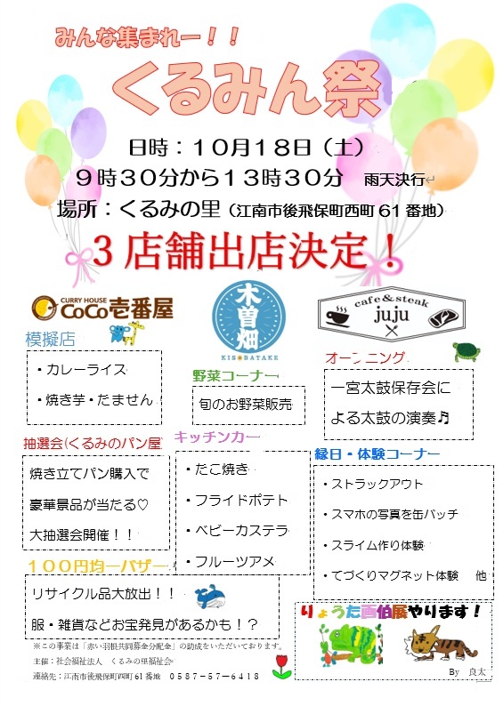社会福祉法人くるみの里福祉会(愛知県江南市)は、10月18日(土)に「くるみん祭」を開催します。