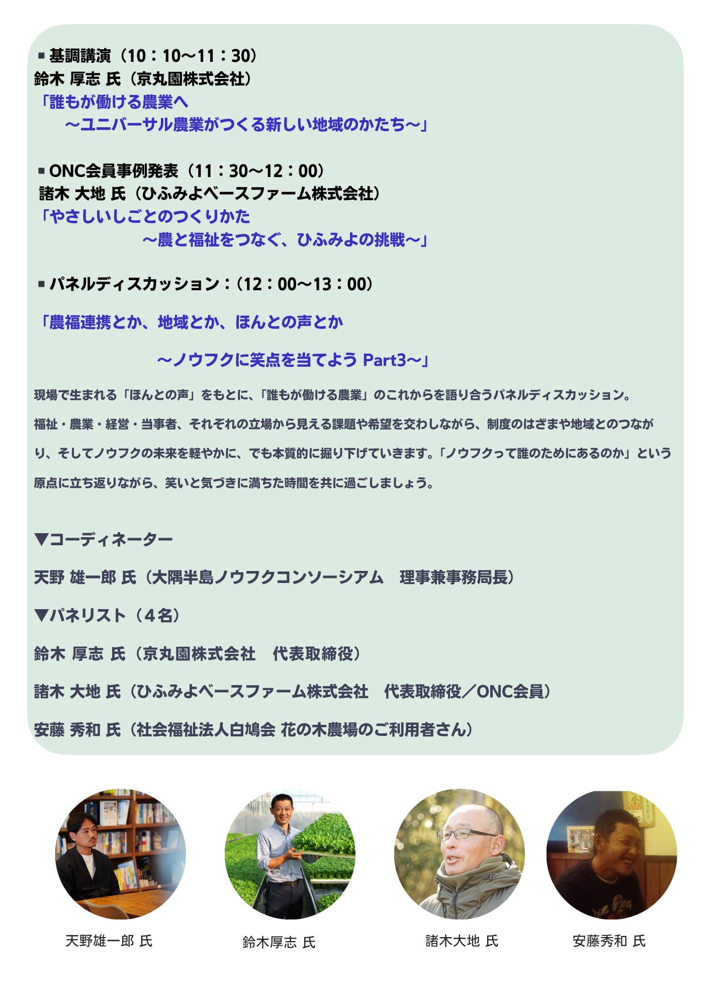 - 基調講演「誰もが働ける農業へ〜ユニバーサル農業がつくる新しい地域のかたち〜」